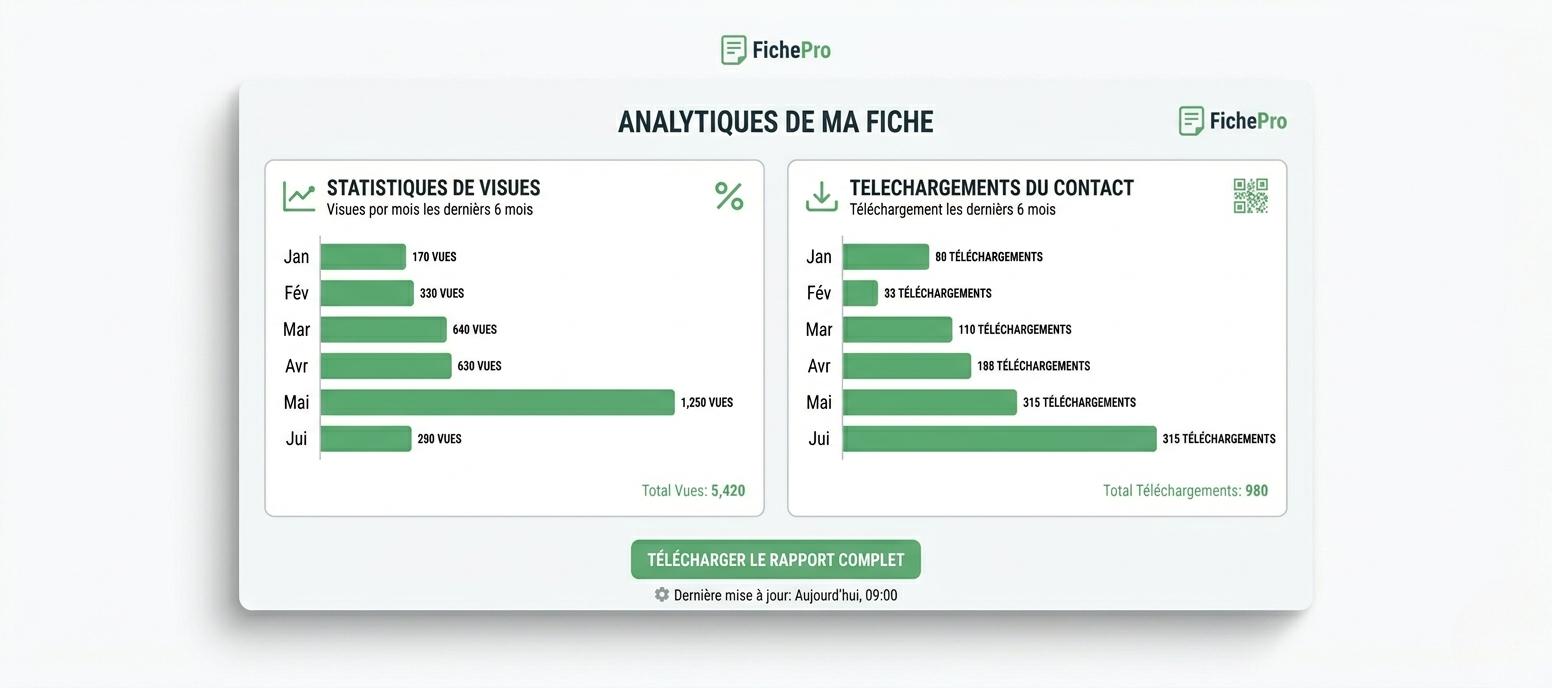 Suivez le nombre de vues et de téléchargements de votre fiche pour mesurer votre visibilité.